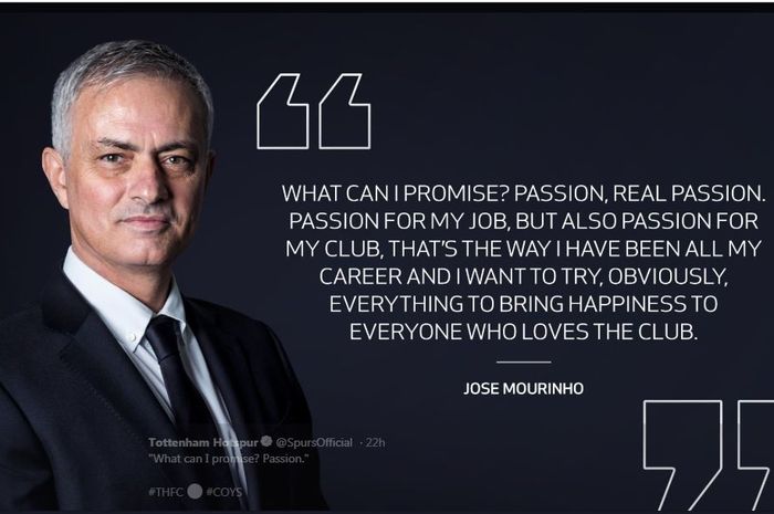 Jose Mourinho melontarkan janji saat ditunjuk sebagai pelatih Tottenhan Hotspur.