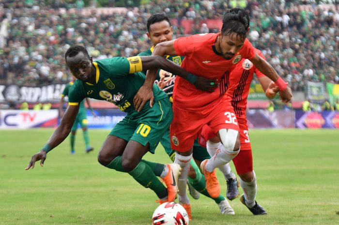 Dalam laga di Stadion Gelora Delta, Sidoarjo, gawang Macan Kemayoran dibobol sebanyak empat kali oleh para pemain Persebaya Surabaya.