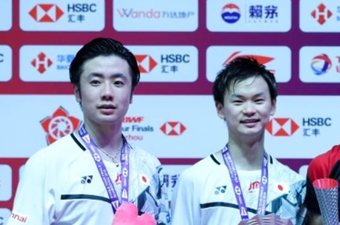 Pasangan ganda putra Indonesia, Mohammad Ahsan/Hendra Setiawan berhasil meraih gelar ketiganya dalam BWF World Tour Finals 2019 setelah menumbangkan Hiroyuki Endo/Yuta Watanabe (Jepang) di Tianhe Gymnasium, Guangzhou, China, Minggu (15/12/2019).