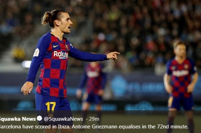 Penyerang Barcelona, Antoine Griezmann, dalma laga kontra Ibiza pada Rabu (22/1/2020).