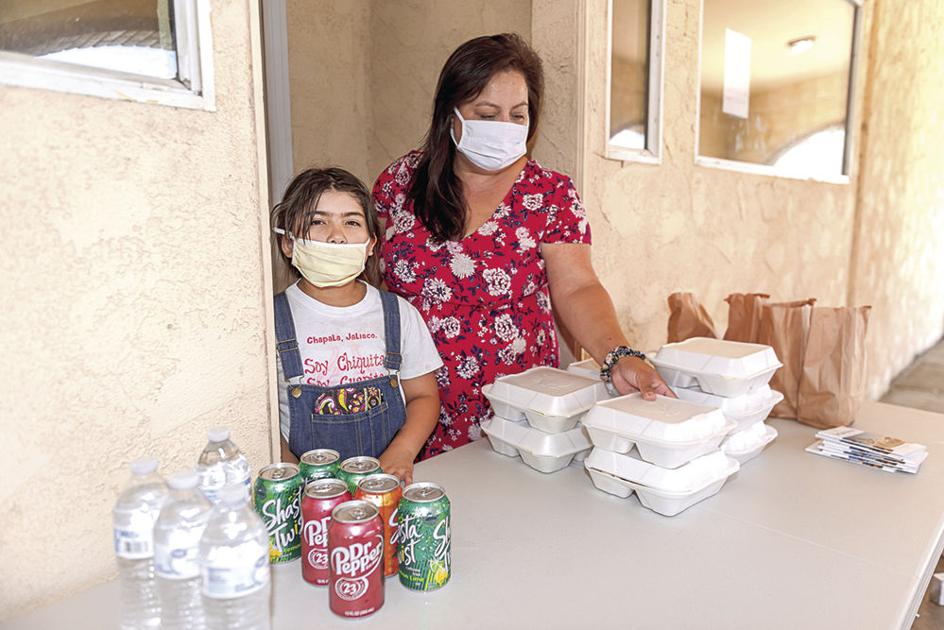 On Wednesday, Servin was offering face masks to anyone receiving meals. She was also collecting donated items for victims of Sunday’s fifth-alarm fire in Niland.