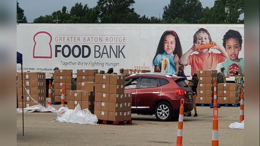 CEO Mike Manning with the Greater Baton Rouge Food Bank says the Louisiana National Guard helped to stock 1,500 households with essential goods to assist with a need that's growing larger by the day.