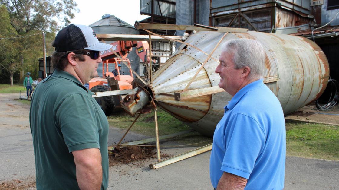 “When we quit manufacturing feed five years ago, we were the oldest manufacturer in Aberdeen. You look at Westlake, the old Seminole jeans manufacturer and even Tronox, and they came after us,” said Ed Mattox, third-generation owner of the business. “The bins have been a landmark, and part of history is coming down. Since we discontinued milling, those bins just stayed there and were deteriorating and becoming a liability.”