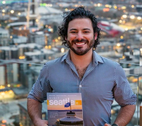Meade received another huge boost recently when his drone photo of the Space Needle bearing a “Mask Up” flag made the cover of Visit Seattle, the official visitors’ guide (https://visitseattle.org/ovg/).