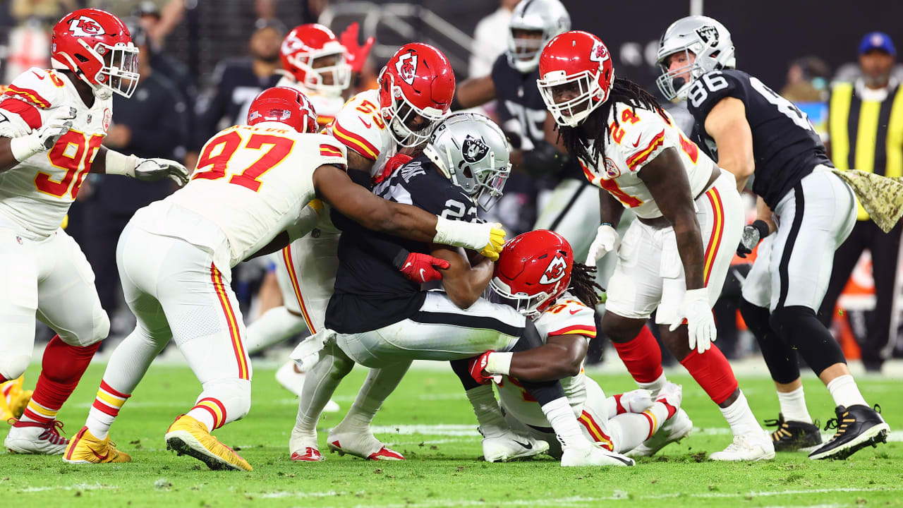 That offensive success aligned perfectly with a defensive effort that racked up five quarterback hits, two sacks and a pair of takeaways. Las Vegas' two turnovers – a fumble and an interception that took place on back-to-back possessions – immediately followed the Raiders' lone scoring drive of the second half and kept Las Vegas off the scoreboard while Kansas City amassed its lead.