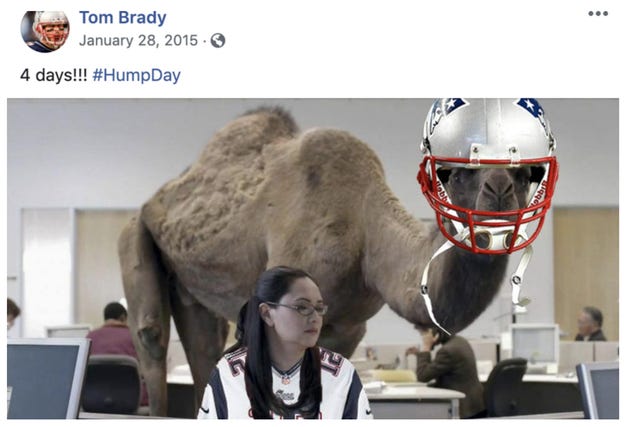 After the résumé post, Brady’s social media started getting funnier. On Jan. 12, 2015, a poorly Photoshopped image of Brady riding the Colts’ logo appeared on the quarterback’s Facebook page. Six days later, the Patriots beat Indianapolis to win the AFC Championship, and Brady was off to his sixth Super Bowl. It would end up being his fourth Super Bowl win.